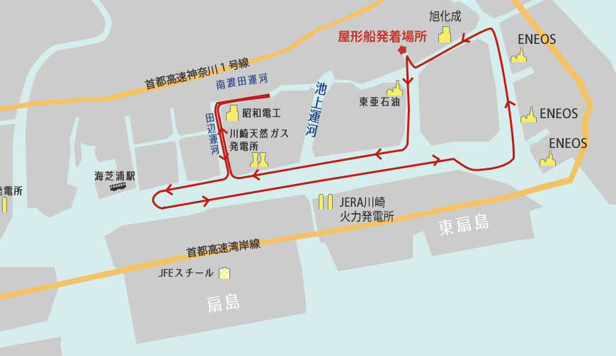 | 川崎 | 川崎駅(日航ホテル前) | 土 | 川崎工場夜景屋形船クルーズ! | ¥4,000 | 長八海運株式会社 |