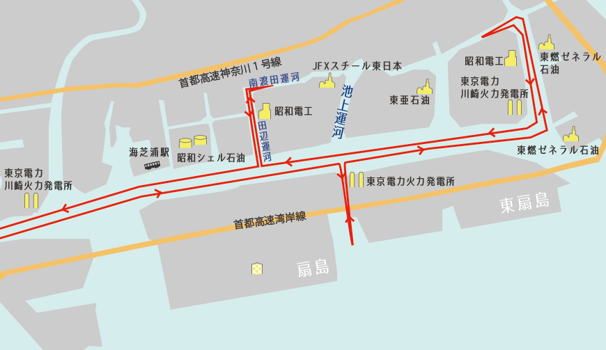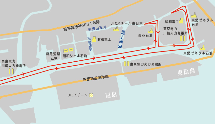 川崎から京浜工場地帯を巡る