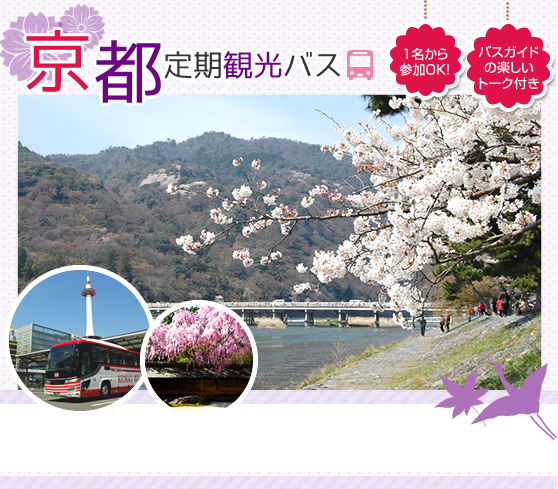 言わずと知れた観光名所・京都をまるごと楽しめる定期観光バス!金閣寺や銀閣寺といった定番スポットはもちろん、季節ごとに楽しめるコースが多数。桜を見に行くツアーなど春の京都を楽しめるツアーを多数集めました。京都を知り尽くしたガイドが案内する、京都観光の決定版!